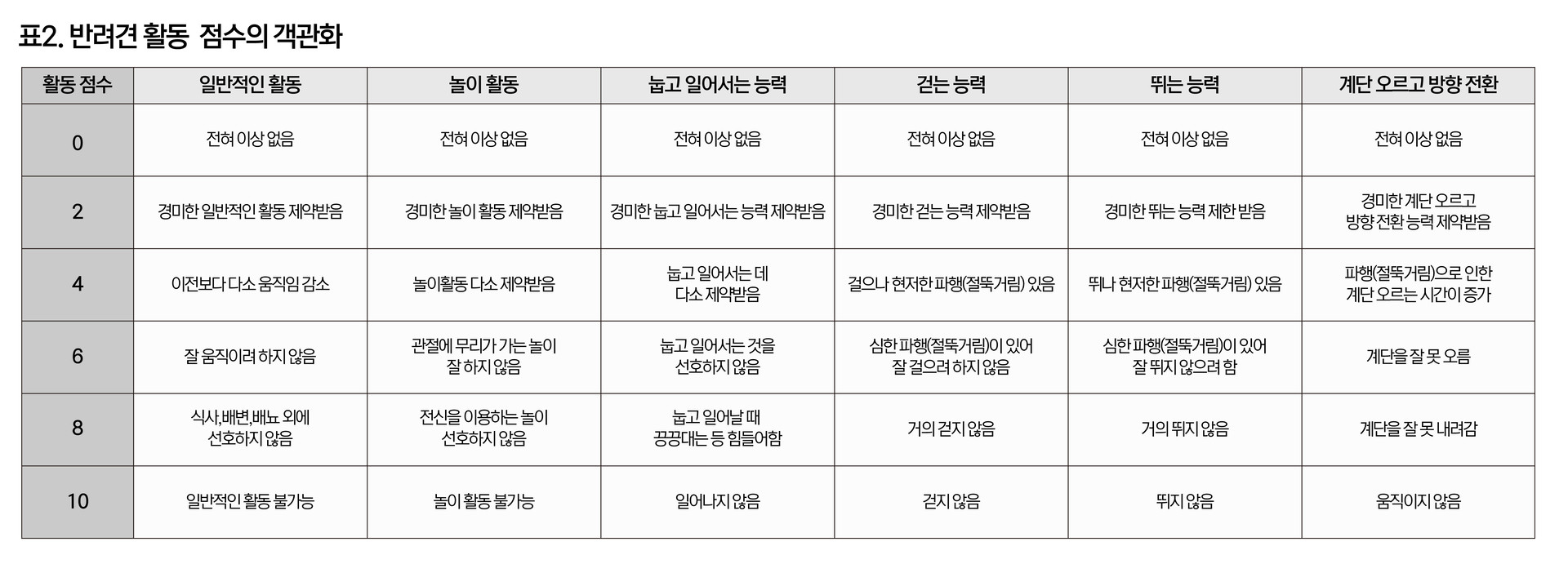 • 활동 지표: 0점(전혀 이상 없음) ~ 10점(활동 불가능)