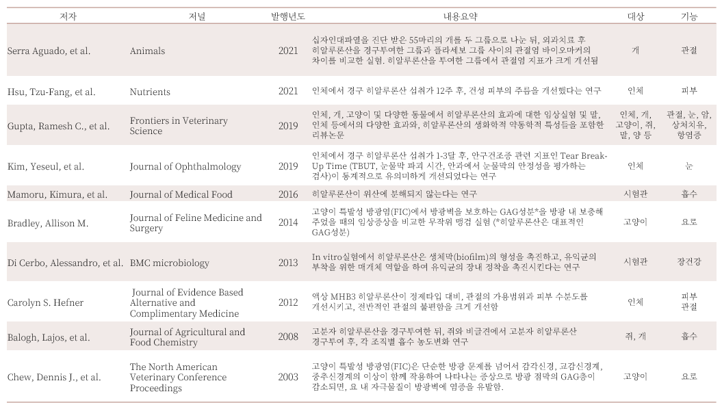 경구 히알루론산의 효과 및 흡수율 관련 근거